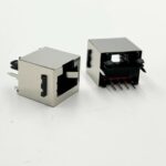 This RJ45 1×1 female connector features a shielded vertical design for stable Ethernet connectivity and reliable signal transmission. It supports standard networking interfaces and is suitable for communication devices, consumer electronics, and industrial equipment. The vertical configuration offers efficient PCB layout options and fits well in space-limited designs.